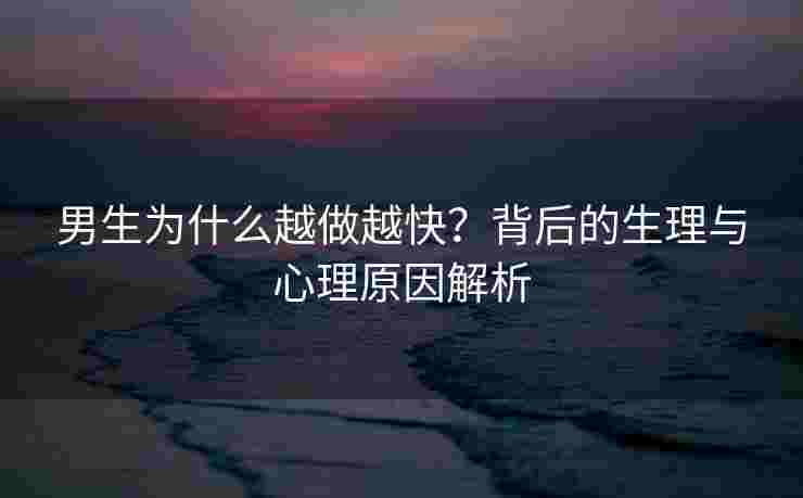 近年来,关于“男生为什么越做越快”的话题引发了广泛讨论。这一现象不仅让部分男性感到困扰,也让他们的伴侣感到不满。为什么会出现这种情况?其实,这种现象背后涉及复杂的生理和心理因素...